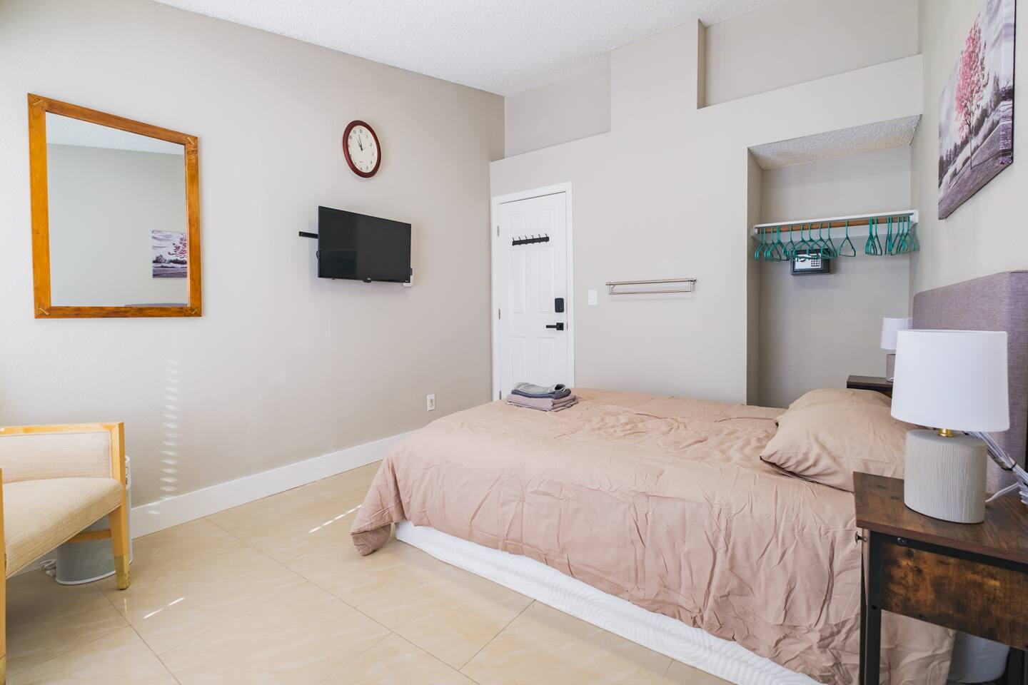 Your private mini master room No.2, which is located on the ground floor, features an attached private bathroom comes with a comfortable bed, desk, air purifier and a flat-screen TV for your entertainment. The room is spacious and beautifully furnished, providing a serene retreat after a day of exploration. This home away from home is also equipped with Tesla charging station for your convenience if needed as well.