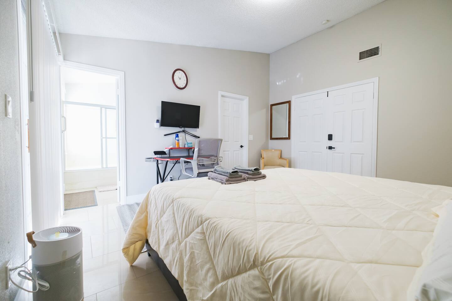 Your private master room No.3, which is located on the ground floor, features an attached private bathroom comes with a comfortable bed, desk, ample storage space, air purifier and a smart TV for your entertainment. The room is spacious and beautifully furnished, providing a serene retreat after a day of exploration. This home away from home is also equipped with Tesla charging station for your convenience if needed as well.